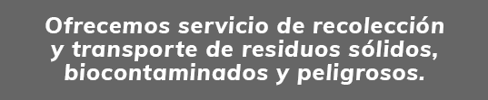 Somos una empresa operadora de residuos sólidos (EO-RS), nos especializamos en el transporte de residuos peligrosos y no peligrosos de origen industrial, dedicada a dar soluciones integrales en ingeniería, asumiendo el compromiso de brindar un óptimo servicio en asesoría, desarrollo, implementación y capacitación en proyectos ambientales y de seguridad. Contamos con una capacidad técnica y operativa para el desarrollo de estudios y proyectos nivel nacional.